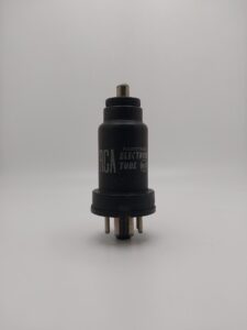 Metal octal type sharp-cutoff pentode used as biased detectors, or high gain audio amplifiers in radio receivers.