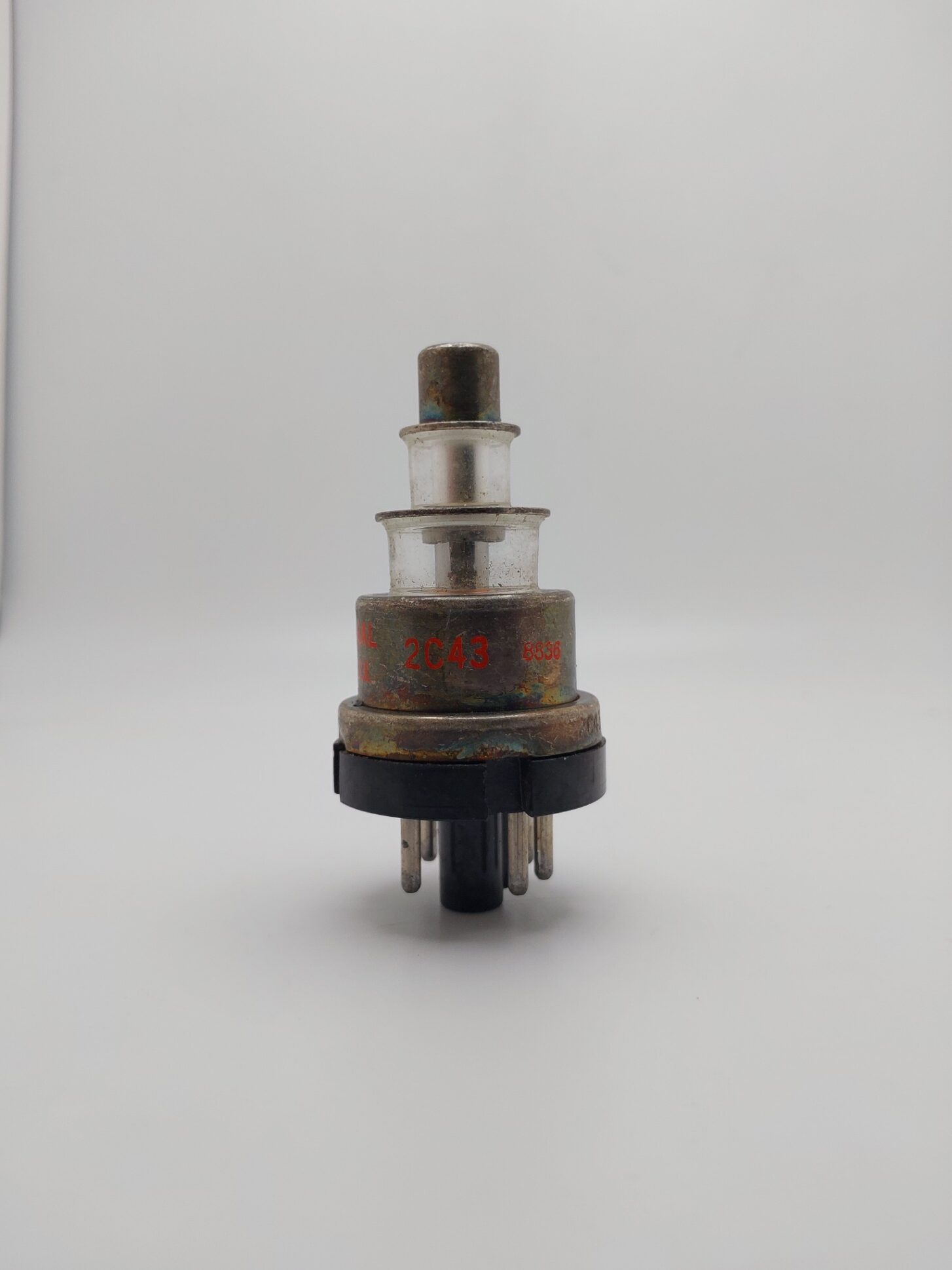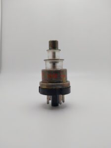 Glass octal lighthouse type planer triode used as an rf amplifier or pulsed oscillator.