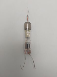 Subminiature type half-wave vacuum rectifier used in compact high-voltage rectifier applications.