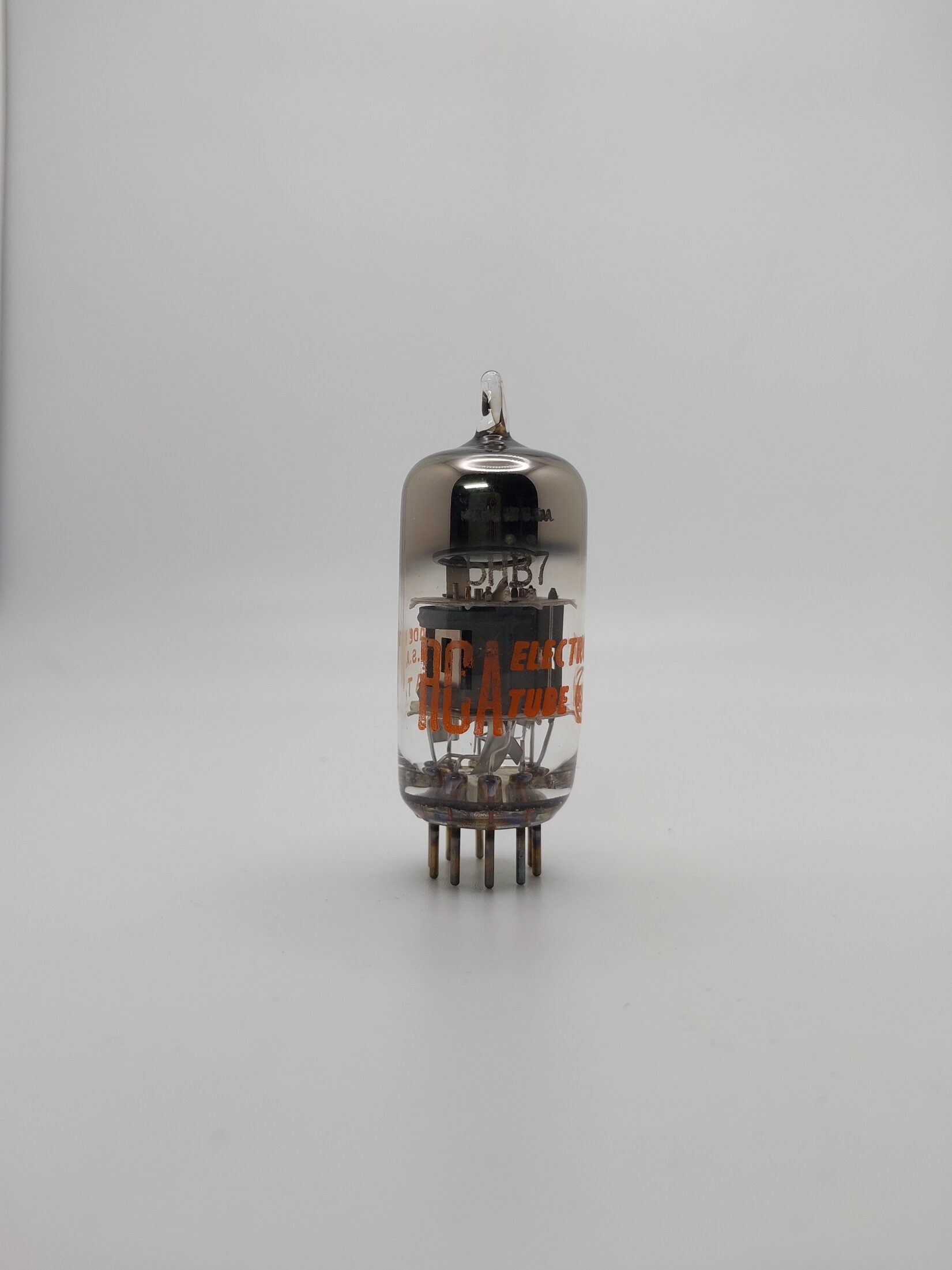 9 pin miniature type medium-mu triode, sharp-cutoff pentode used as a combined oscillator and mixer tube in television receivers.