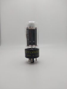 Glass octal type half-wave vacuum rectifier used as a damper tube in horizontal deflection circuits of television receivers.