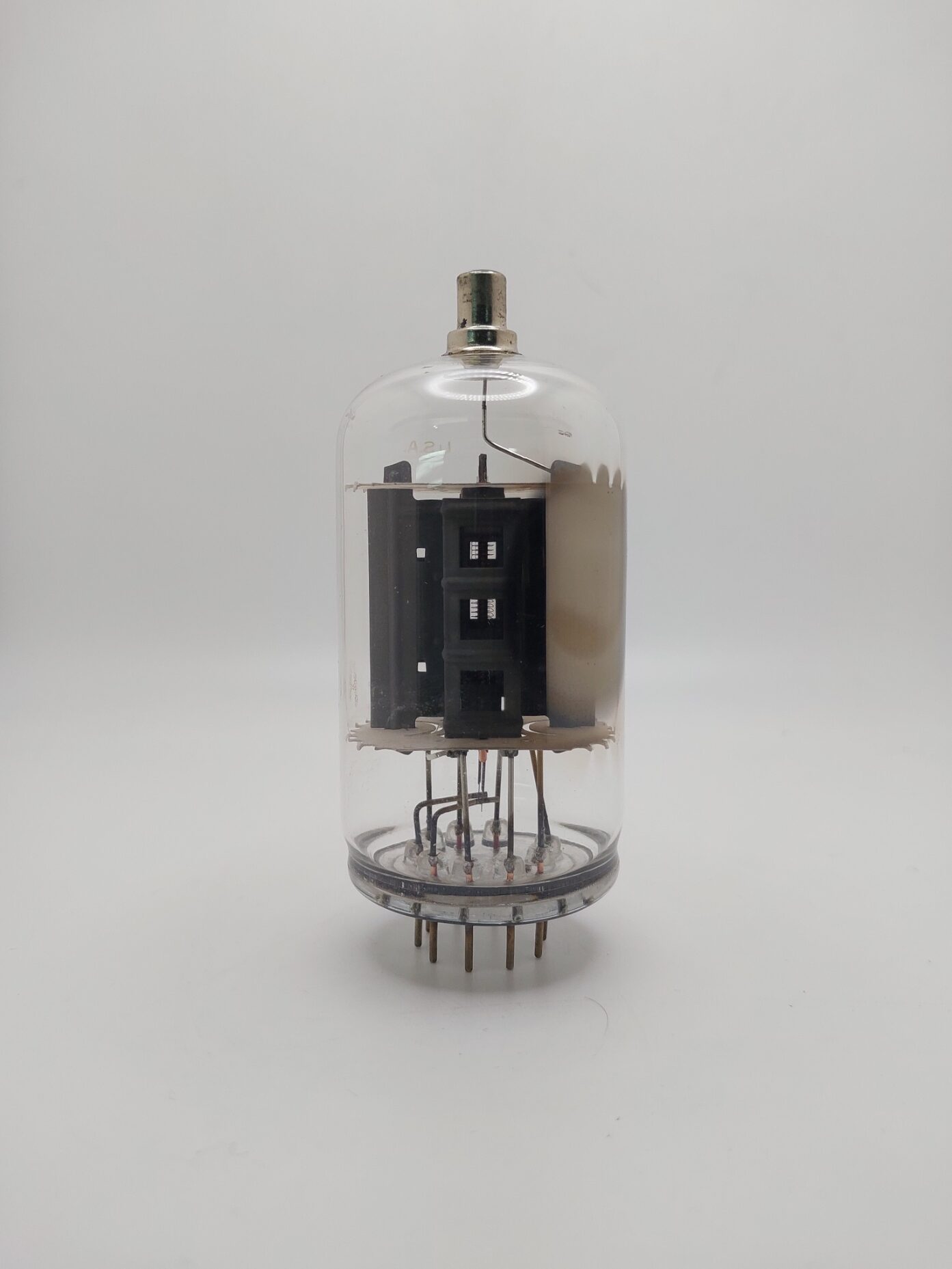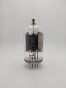 Novar type beam power tube used in high efficiency horizontal-deflection-amplifier circuits of television receivers.