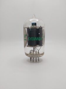 Novar type beam power tube used a horizontal deflection amplifier in television receivers.
