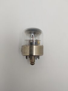 Glass lock-in type sharp-cutoff double tetrode used as rf amplifier to frequencies up to 400 Mc.