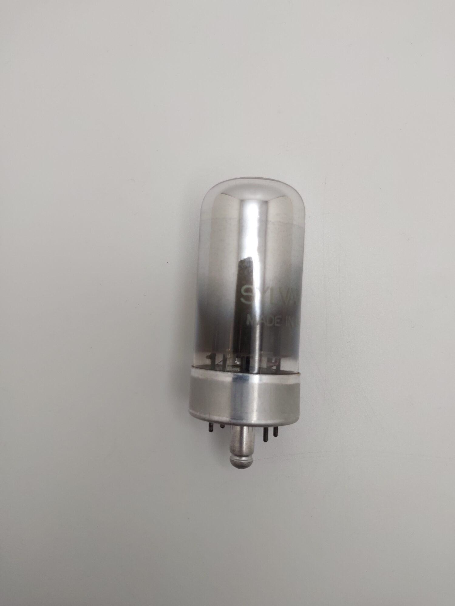 Glass lock-in type high vacuum twin diode used as a power rectifier in radio and television applications.