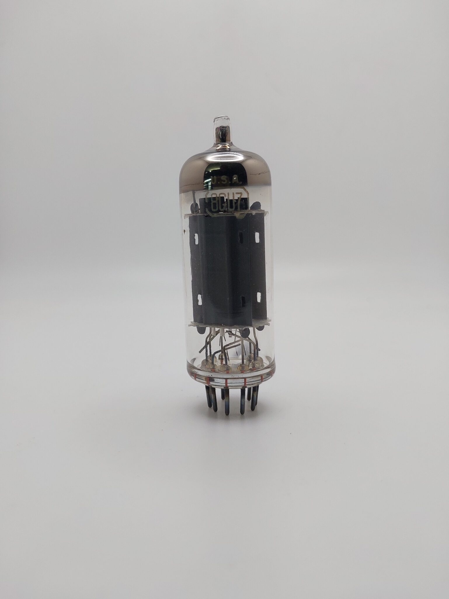 9 pin miniature type medium-mu twin triode used in the matrixing circuits of television receivers.