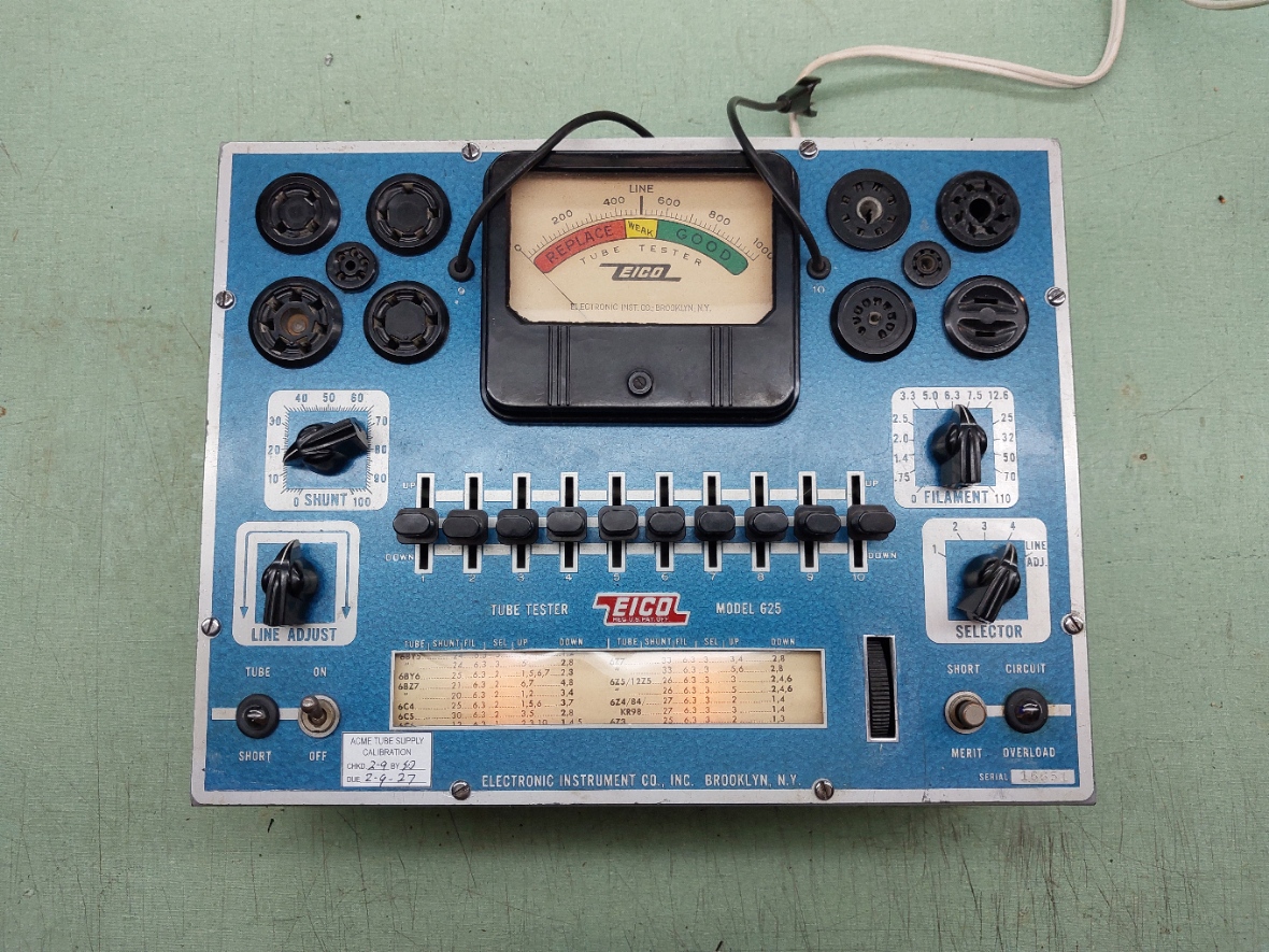 This Eico 625 tube tester has been electrically restored and calibrated. All resistors were checked and out of value replaced it has been completely recapped. All switches and controls have been cleaned. A copy of the users manual will be included.